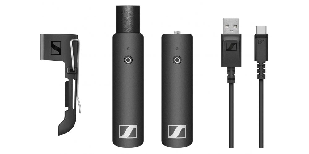 Conjunto básico de presentaciones de XS Wireless Digital. Conjunto inalámbrico de audio fácil de usar con un solo toque con transmisor XSW-D de 3.5 mm (1/8″), receptor macho XSW-D XLR, clip para cinturón y cable de carga de USB-A a USB-C.