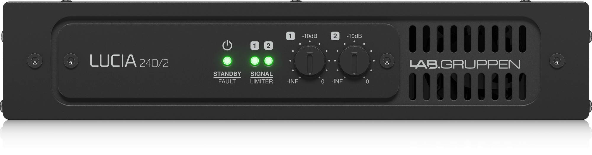 LUCIA 240/2 ha sido diseñado y fabricado para una rápida instalación y una fácil configuración. El soporte de montaje en pared incluido permite una ubicación discreta en la pared (por ejemplo, detrás de pantallas de vídeo), pero el formato ultracompacto también permite una fácil colocación prácticamente en cualquier lugar, ya sea junto a un proyector o integrado en un mostrador de recepción, podio y atril o área de bar. Todas las conexiones de entrada y salida están en terminales de tornillo Euroblock (con conectores RCA no balanceados en paralelo), y el ajuste de nivel está disponible en potenciómetros del panel frontal. Los circuitos avanzados protegen el amplificador y los altavoces conectados de posibles daños causados por saturación, sobrecarga térmica o voltaje de línea extremadamente bajo.