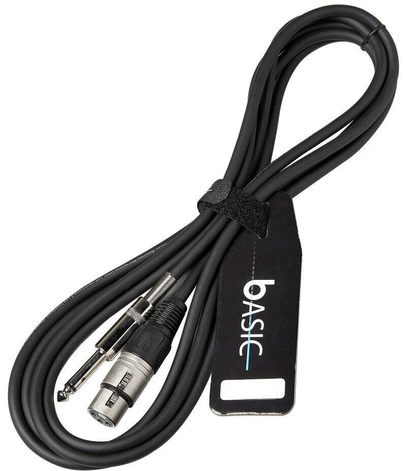 Cable de micrófono apantallado no balanceado Serie básica compuesto por una hembra cañón y un jack mono de 6,3 mm. Longitud 5 metros.