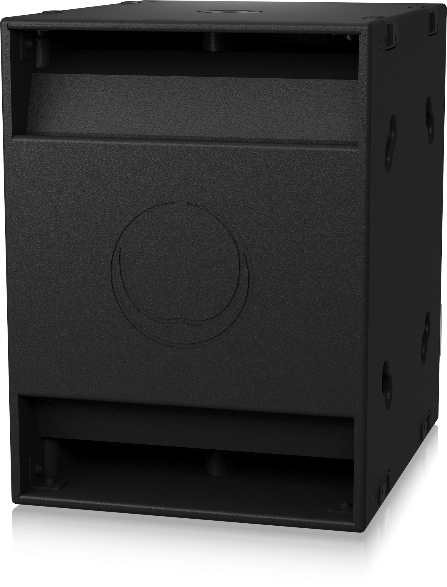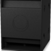 Acabado con una pintura negra semimate de alta durabilidad, el gabinete está fabricado con contrachapado de abedul de 18 mm (¾») e incluye: múltiples puntos de anclaje roscados M10; un soporte para poste de 35 mm para el montaje de altavoces satélite; asas de transporte integradas para un transporte cómodo y esquinas entrelazadas de alto impacto para una mayor estabilidad al apilarlo en el suelo. La entrada de alimentación se realiza mediante un conector de alimentación con cierre giratorio estándar de la industria.