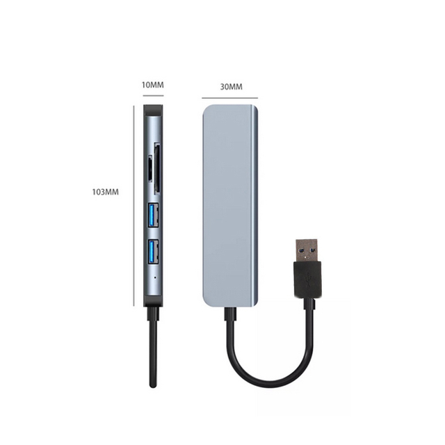- Concentrador 5 en 1 USB 3.0, plug and play, no necesita controlador