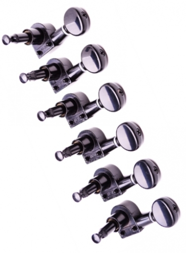 Clavijero en línea recta para guitarra eléctrica y para guitarra acústica en ciertos modelos según la forma del cabezal, color negro