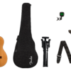 El paquete de accesorios incluye: funda, correa, púas, afinador con clip, soporte para guitarra y un juego adicional de cuerdas.