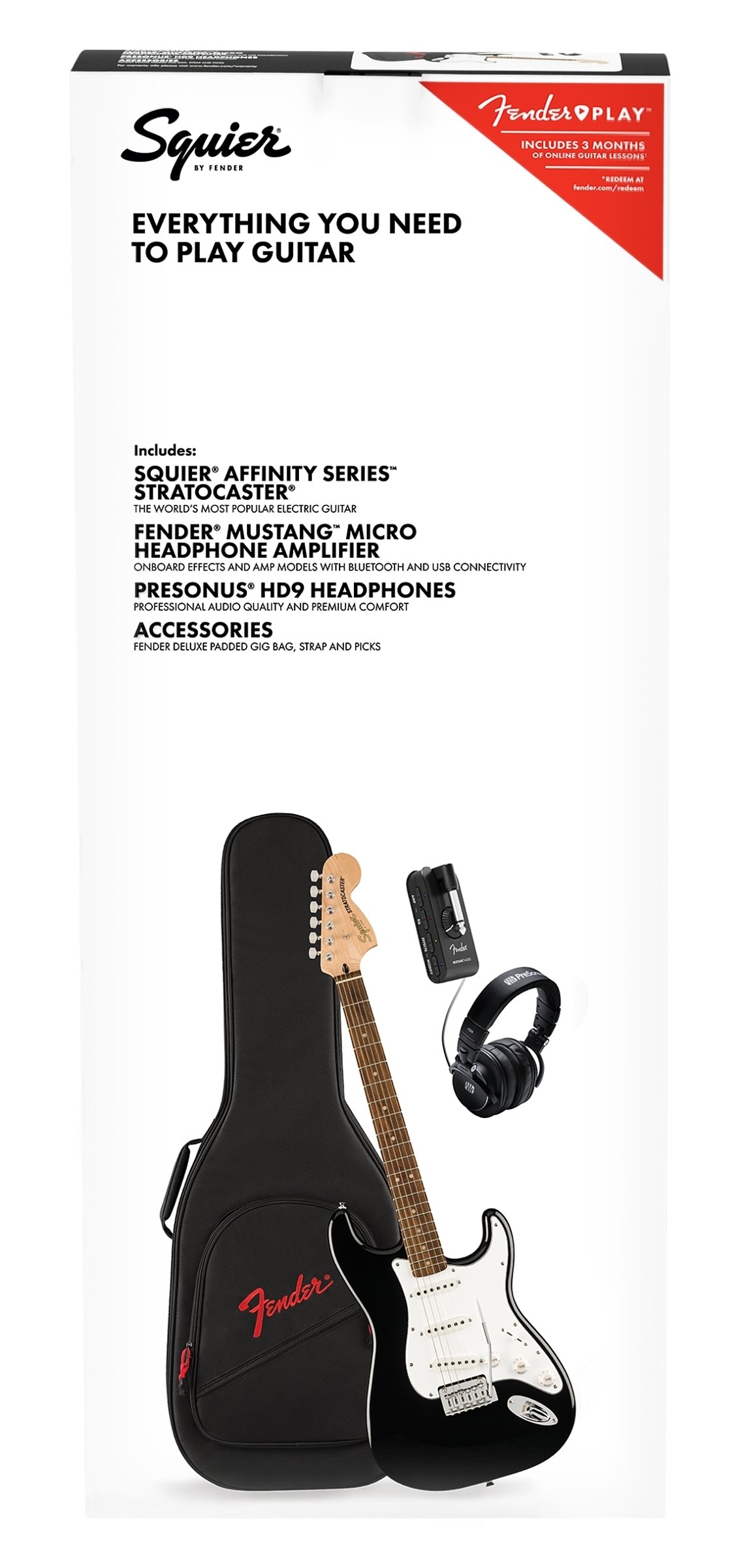 Este pack, diseñado para los/las músicos creativos/as, incluye un amplificador de auriculares Fender Mustang Micro, una Squier Affinity Series Stratocaster, auriculares PreSonus HD9 y una selección de accesorios.