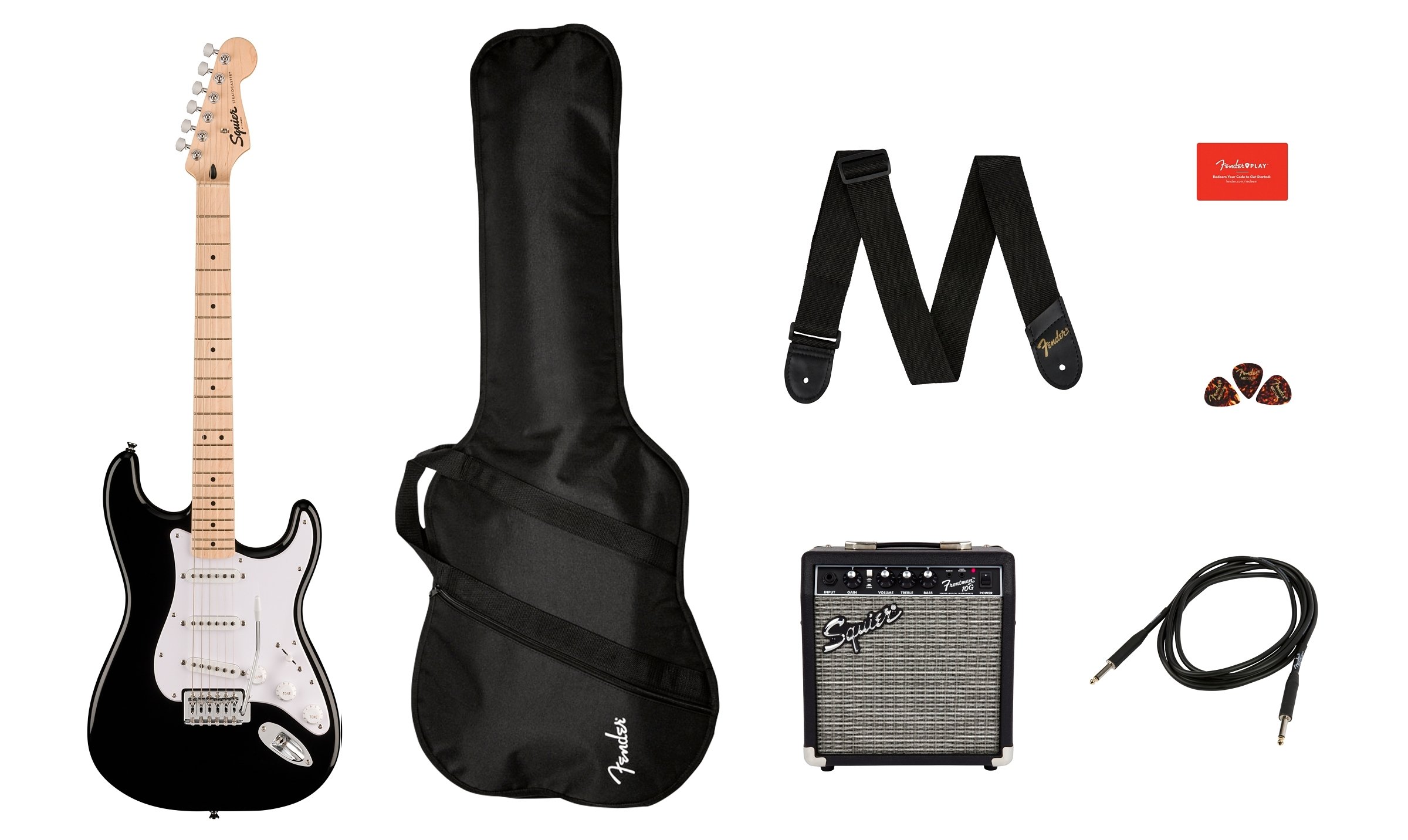 El paquete Squier Sonic® Stratocaster® está listo para lanzar cualquier aventura musical a toda velocidad, ofreciendo a los nuevos músicos una cómoda colección de elementos esenciales para la guitarra en una sola caja. Un ícono de la historia de la música y una gran opción para principiantes, la Stratocaster es famosa por su elegante y cómodo cuerpo contorneado y su mástil delgado y fácil de tocar.