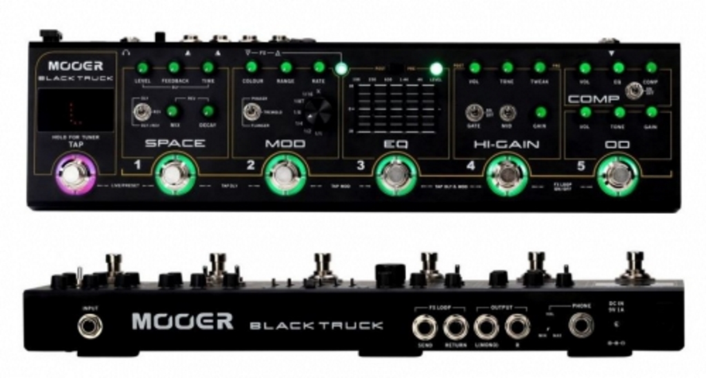 - Controles completos para cada efecto, afinador de guitarra de precisión incorporado, sincronización de tap tempo, salidas estéreo