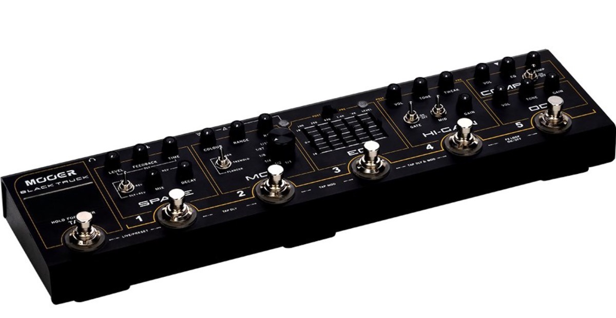 - 6 pedales de efectos integrados en 1 unidad simple.Compresor, sobremarcha, distorsión, ecualizador, modulación, retardo / reverberación