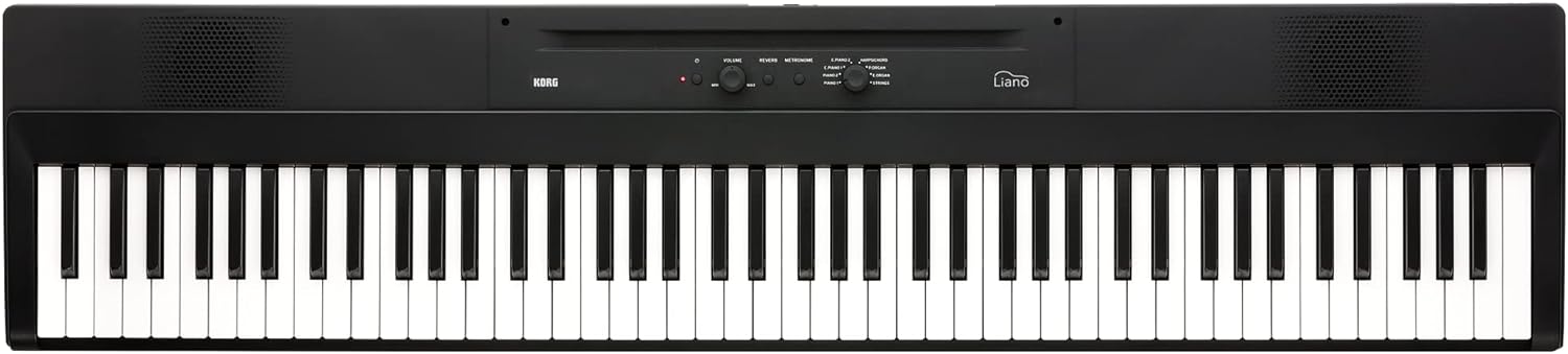 El piano digital Korg Liano ofrece un rico sonido de piano y un teclado de 88 teclas de tamaño completo, en un diseño delgado y compacto que se adapta fácilmente a cualquier espacio vital. Con 88 teclas semipesadas con la acción de teclado LS premium de Korg, Liano es la manera perfecta de mejorar tus habilidades de piano. Una selección a bordo de sonidos de instrumentos incluye el famoso sonido de piano «Italian Grand» de Korg, así como una gama de inspiradores pianos eléctricos, cuerdas y otros sonidos de instrumentos. El metrónomo integrado convierte a Liano en una solución de práctica integral, y la conectividad USB te permite conectarte a tu computadora para composición, grabación, reproducción de instrumentos virtuales y aplicaciones de aprendizaje de piano. Y Liano es un instrumento de rendimiento verdaderamente portátil, que le permite realizar en cualquier lugar con seis baterías AA que proporcionan hasta 8 horas de funcionamiento.