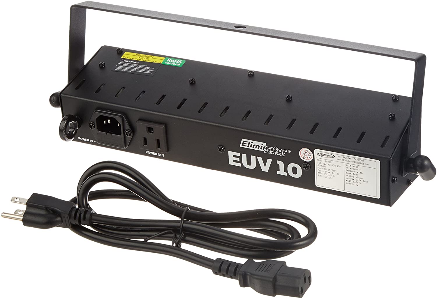 La EUV 10 de Eliminator es un potente efecto LED ultravioleta que puede cubrir una variedad de áreas extensas. Colgar o dejarlo sobre una superficie plana, este efecto UV es ideal para DJs y clubs con 10 1-watt UV LED. Ligero y portátil, la EUV 10 puede viajar con usted dondequiera que haya un tomacorriente de pared estándar.