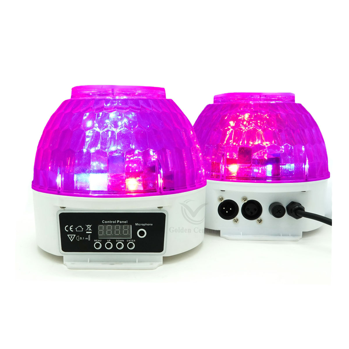Características: Bola mágica DMX Crystal con 4 efectos de gobo, velocidad y brillo ajustables, el color se puede cambiar con el programa seleccionado.