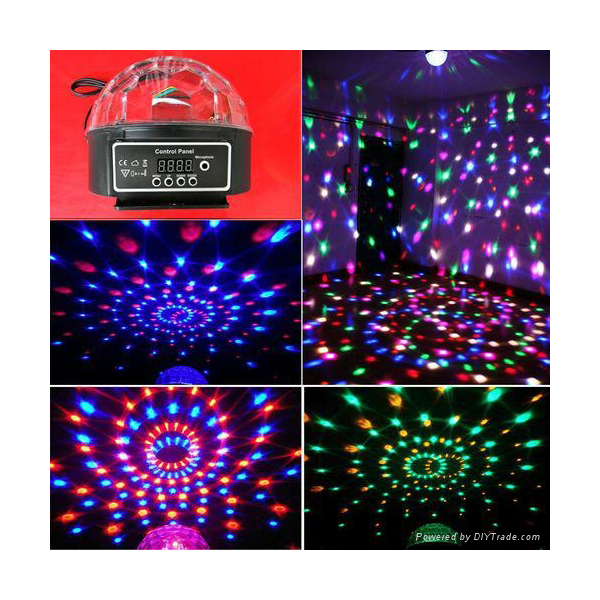 Bola mágica de cristal DMX, dos patrones para anillos opcionales o efecto de red de araña. Genera 82 haces de luz fuerte, efectos con luz estroboscópica, velocidad y brillo ajustables, el color se puede cambiar con el programa seleccionado.