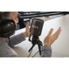 El USB es compatible con el uso de un kit de la cámara opcional. Incluido con el mic son un escudo pop, un soporte de mesa trípode, un montaje de anillo, un largo cable USB de 20 pies, y una bolsa de almacenamiento.