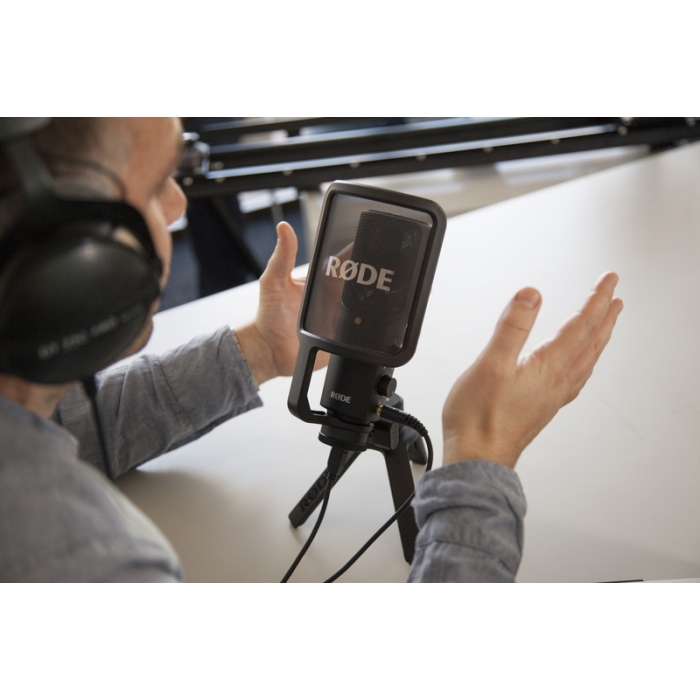 El NT Micrófono USB de Rode es un micrófono USB de dirección lateral cardioide que es capaz de capturar audio en hasta 16-bit / 48kHz resolución. Tiene un amplificador de auriculares integrado y jack de 1/8 «para auriculares estéreo que permite la monitorización. El micrófono en control de mezcla directa le permite seleccionar entre entrada de micrófono y entrada de fuente para el monitoreo.