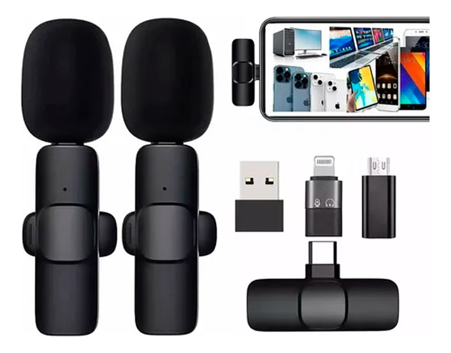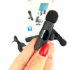 Prácticos y novedosos micrófonos corbateros inalámbricos para smartphones con clip de gancho para sujetar en el cuello de cualquier camiseta o en la solapa del saco.