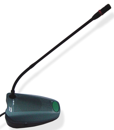 La cápsula back electret cardioide se ha optimizado para emisiones de voz. El altavoz de baja distorsión ofrece un sonido transparente y prominente, incluso en ambientes de acústica difícil. De este modo, sus aportaciones tendrán la atención suficiente. Los contenidos de la discusión también pueden reproducirse mediante auriculares opcionales. El botón grande de función permite un funcionamiento práctico del micrófono y de la estación de sobremesa indicando con precisión el estado funcional del aparato.
