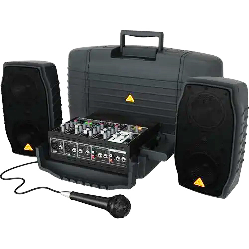 - Ultra compacto 2 x 75 vatios, 5 canales PA portatil en un formato de maletin