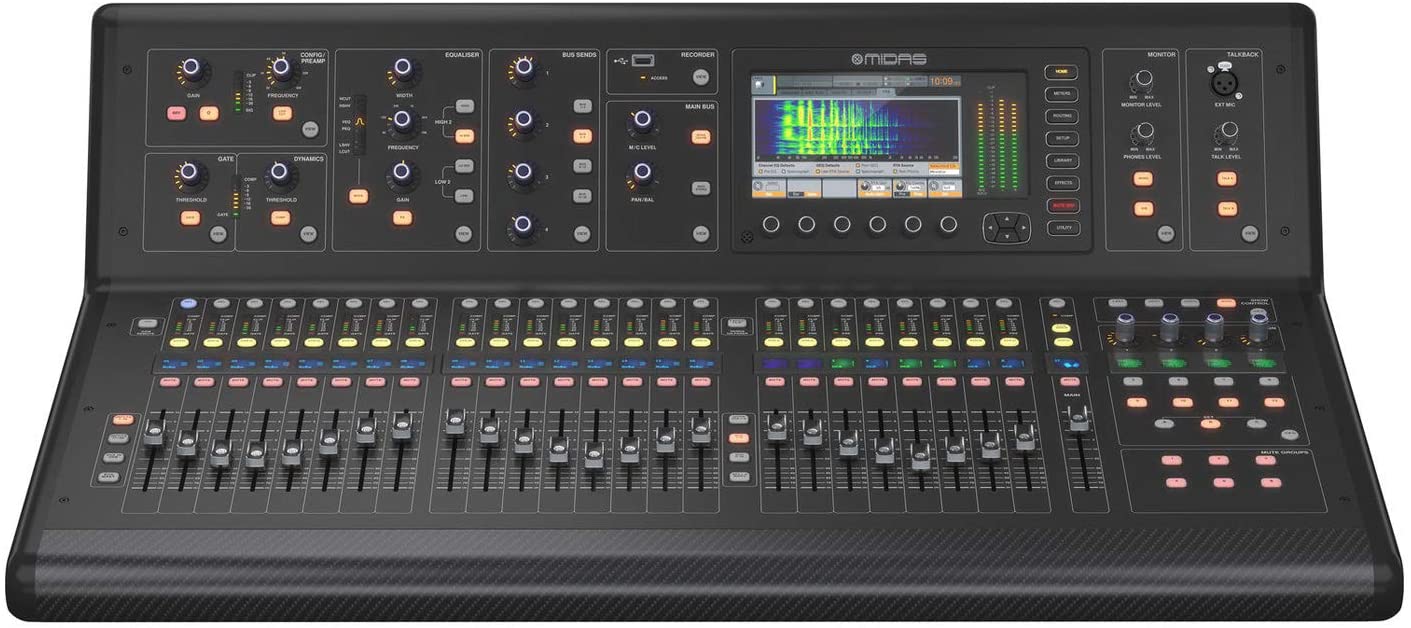 Independientemente de si el usuario viaja con un mezclador analógico o digital, los primeros pasos de la condición M32 Live son muy intuitivos, fluidos y sencillos. El objetivo principal del M32 Live es su simplicidad y su rápido flujo de trabajo. Los controles táctiles permiten una adaptación suave a los elementos críticos a medida que la mezcla progresa, mientras que la pantalla TFT mantiene al usuario actualizado paso a paso. Esta integración de controles táctiles, faders motorizados y una gama de pantallas LCD y TFT hacen de Midas M32 Live la primera opción para aplicaciones de sonido en vivo, transmisión, grabación en estudio y postproducción. Un flujo de trabajo intuitivo combinado con una interfaz de usuario totalmente interactiva proporciona una familiaridad inmediata. La ingeniería avanzada y el diseño meticuloso ofrecen una calidad de sonido superior a un precio extremadamente asequible.