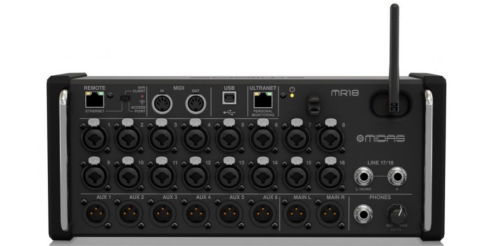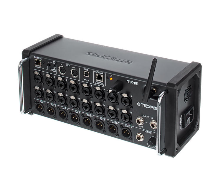En los últimos años, el mundo de la grabación y el rendimiento del audio ha experimentado un gran cambio de paradigma, que requiere que los músicos y los intérpretes se beneficien de las tecnologías emergentes que ofrecen flexibilidad y facilidad de uso. El MR18 es un mezclador portátil de 18 entradas / 8 buses ubicado en un diseño de caja de escenario resistente para usar con tabletas iPad y Android. Es ideal para aplicaciones tanto en vivo como en estudio gracias a los 16 premiados preamplificadores de micrófono MIDAS PRO, el módulo Wifi integrado para control inalámbrico, MIDI I / O, y una interfaz de audio USB bidireccional multicanal. Las aplicaciones gratuitas para iOS, Android y PC le permiten moverse por el lugar o la sala de seguimiento y manipular todos los parámetros de su mezcla, y los artistas tienen la misma libertad para marcar sus mezclas de monitores personales. La ingeniería avanzada y el diseño meticuloso se combinan para ofrecer un rendimiento de nivel profesional y una asequibilidad impresionante: el MR18.