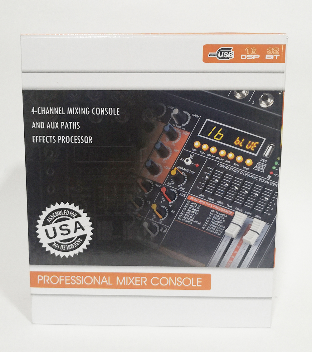 •  Mesa de mezclas en vivo de 4 canales con procesador de efectos DSP incorporado.