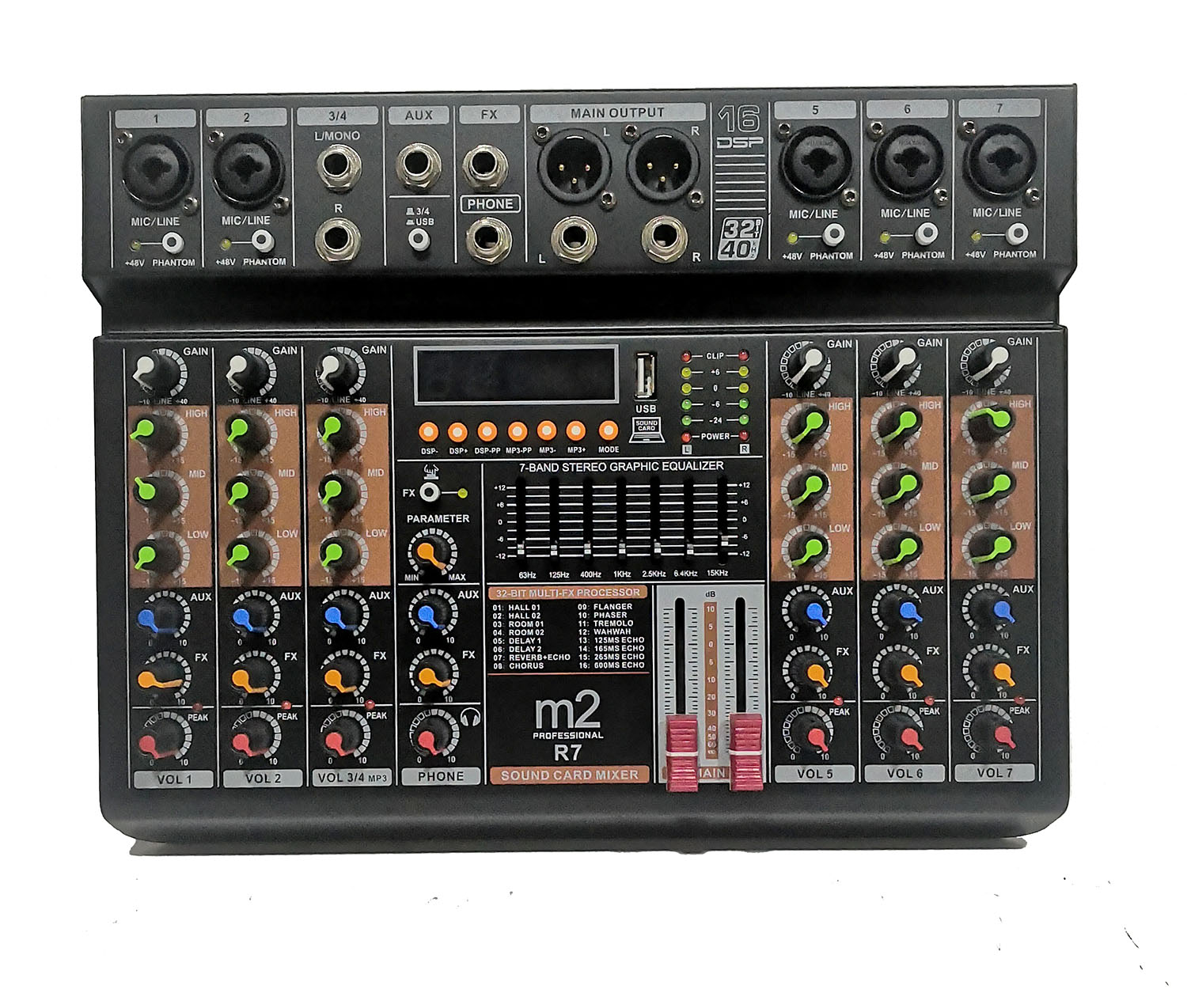 Mixer M2 de 7 canales con Efectos Modelo: R-7 cod.020202060