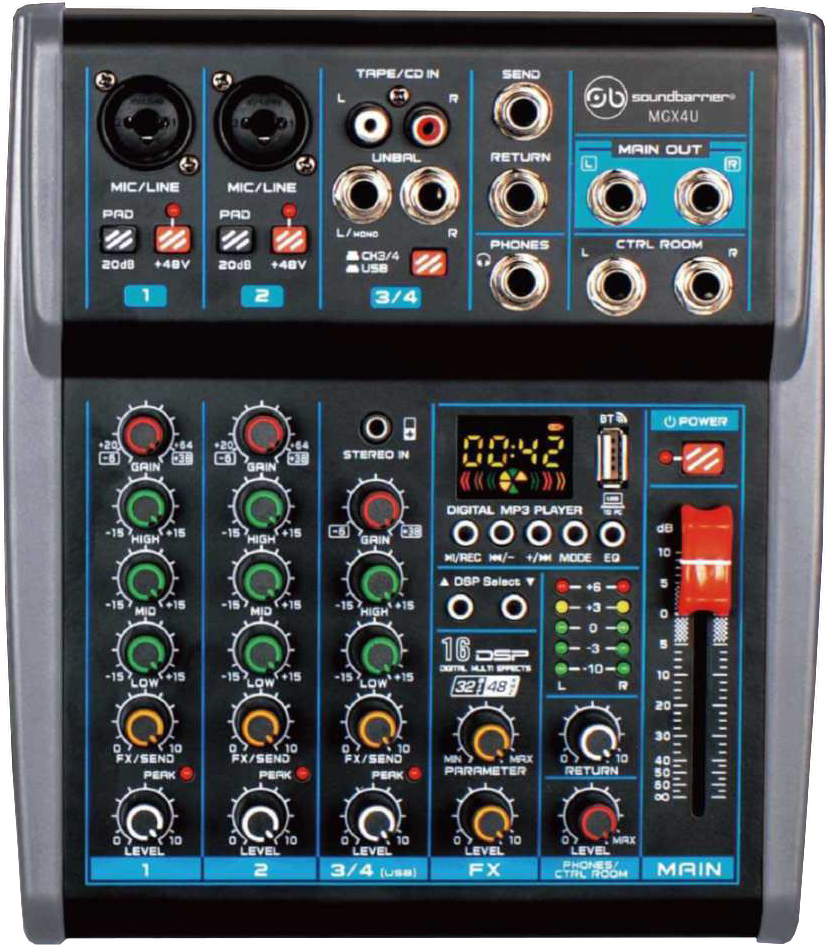 Mixer SOUNDBARRIER con USB – Bluetooth 4 canales