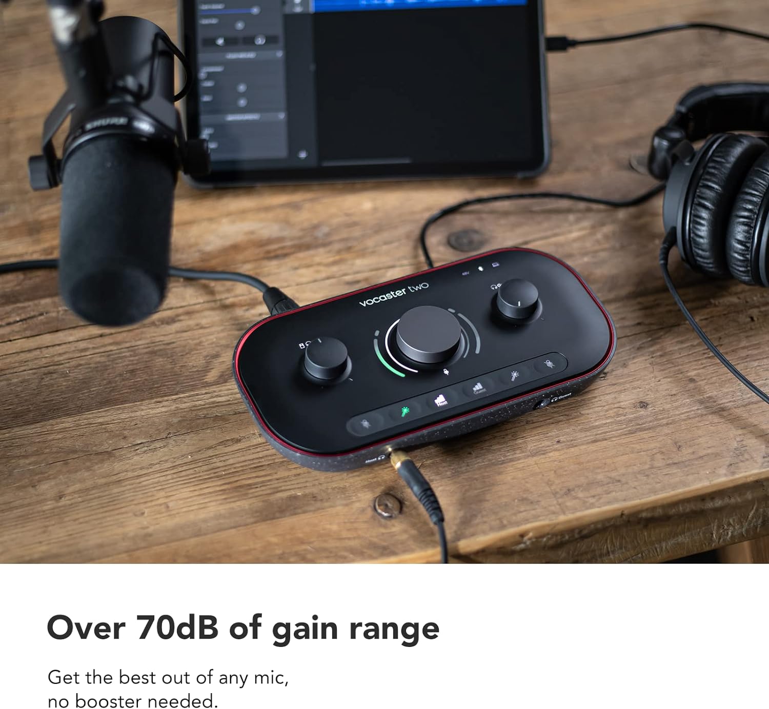 ¿Cómo puedes conseguir el sonido de emisión que merece tu pódcast? La respuesta nunca ha estado tan clara. Disfruta de un sonido increíble con una ganancia más que suficiente para cualquier micrófono XLR, tanto para ti como para un invitado. Capta la conversación en el estudio, por teléfono o en línea. Ajusta los niveles, mejora el sonido con un solo clic y destaca con Vocaster Two en segundos. Consigue que tu pódcast suene profesional gracias al control automático de ganancia (Auto Gain), la función de mejora (Enhance), los dos conectores de micrófono y los dos de auriculares, el audio por Bluetooth desde el teléfono y mucho más.