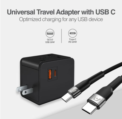 Viaje sin problemas por todo el mundo con este adaptador de viaje universal, compatible con más de 150 países. Cuenta con cuatro enchufes internacionales y un diseño versátil de bloqueo/desbloqueo para cambiar fácilmente entre enchufes de EE. UU., Australia/Nueva Zelanda, Reino Unido y Europa